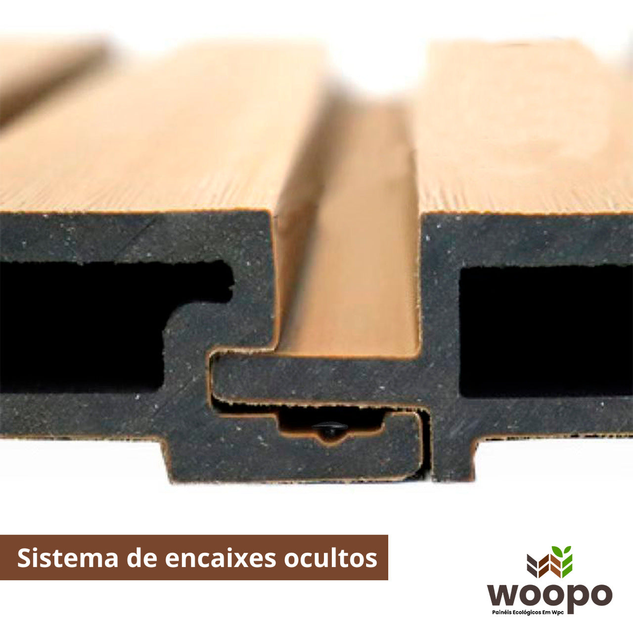 Feito em **WPC (Wood Plastic Composite)** com aditivos de proteção UV, é imune à chuva, sol intenso, cupins e mofo. Ideal para fachadas, muros, varandas, áreas gourmet e ambientes comerciais, seu acabamento moderno eleva qualquer projeto arquitetônico com sofisticação e durabilidade.